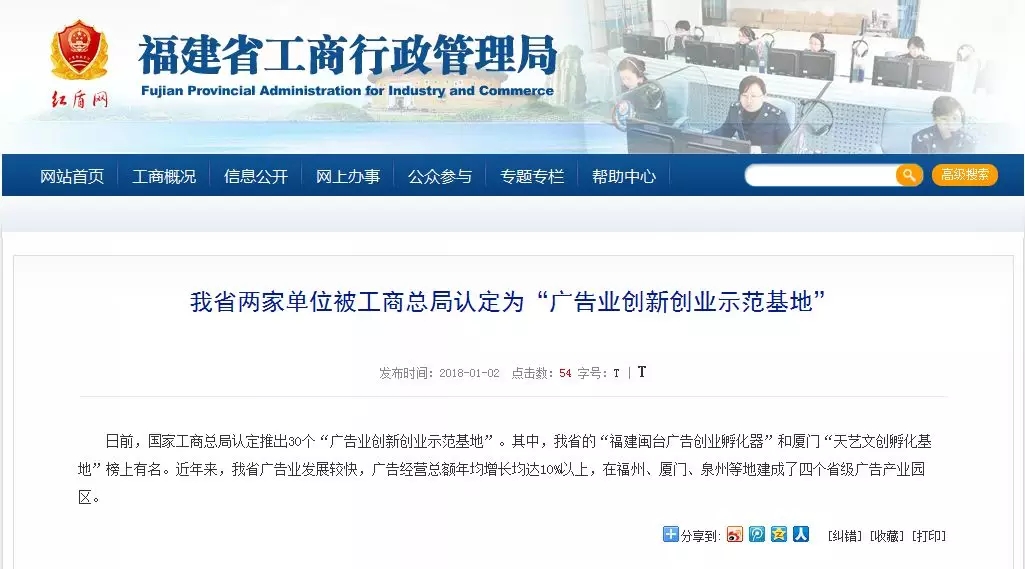 日前,在國(guó)家工商行政管理總局辦公廳出臺(tái)的《關(guān)于進(jìn)一步推進(jìn)廣告業(yè)創(chuàng)新創(chuàng)業(yè)有關(guān)工作的通知》(辦字【2017】209)中,由廈門(mén)市天藝傳媒股份有限公司創(chuàng)辦的“天藝文創(chuàng)孵化基地”被評(píng)定為國(guó)家級(jí)廣告業(yè)創(chuàng)新創(chuàng)業(yè)示范基地,成為廈門(mén)市2017年度唯一一家獲評(píng)廣告業(yè)創(chuàng)新發(fā)展優(yōu)秀典型企業(yè)的單位。